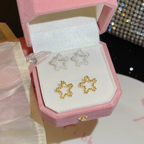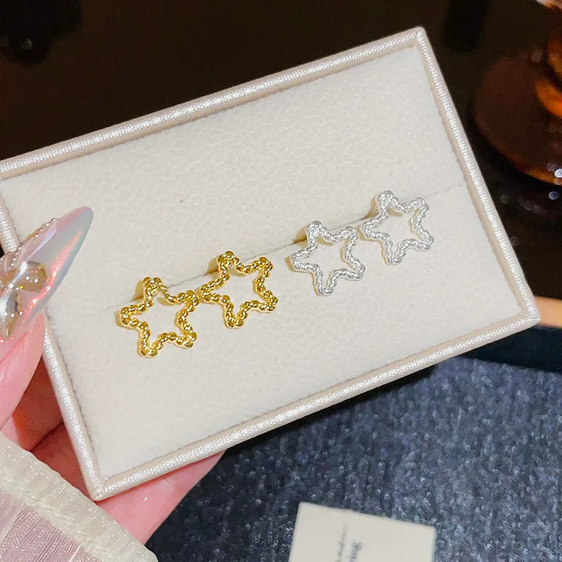 Casual Sweet Commute Pentagram Plating Hollow Out Alloy Ear Studs