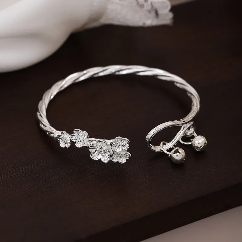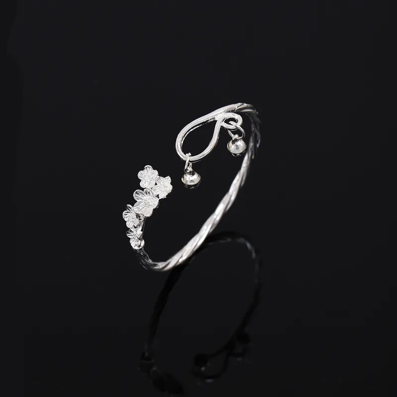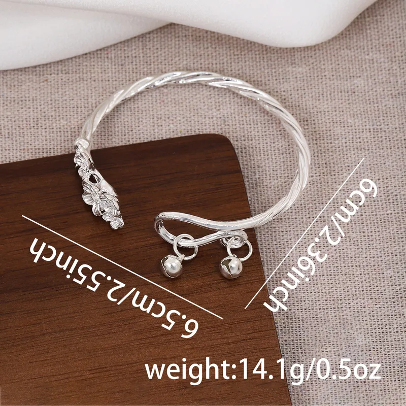 This Chinoiserie Flower Bell Alloy Bangle is a elegant and unique piece of jewelry that combines the traditional Chinese design of Chinoiserie with the delicate tinkling of bells.it is both durable and stylish, making it the perfect accessory for any outfit. Elevate your fashion game with this exquisite bangle.