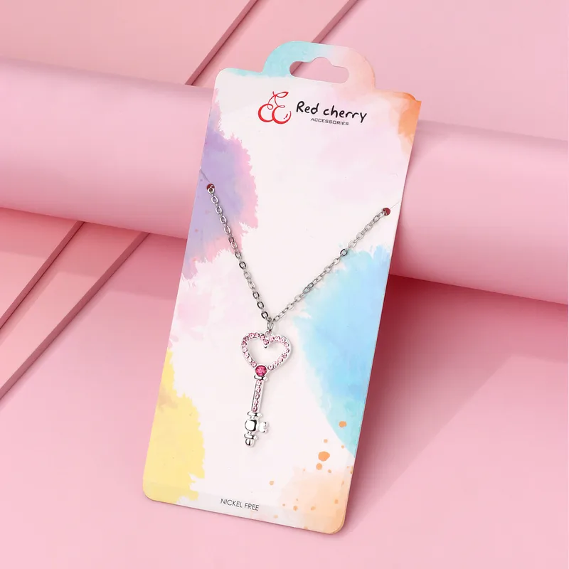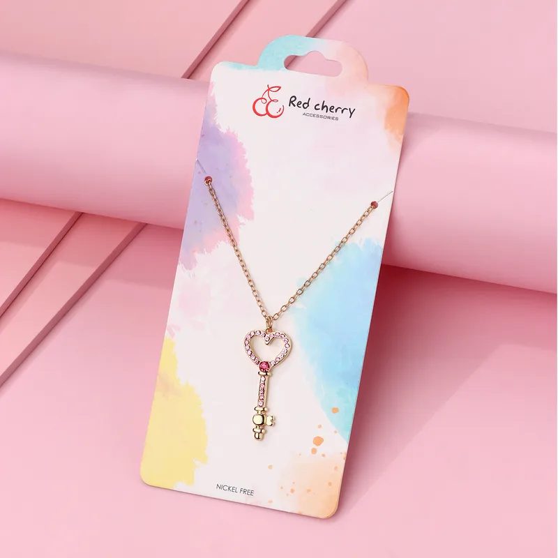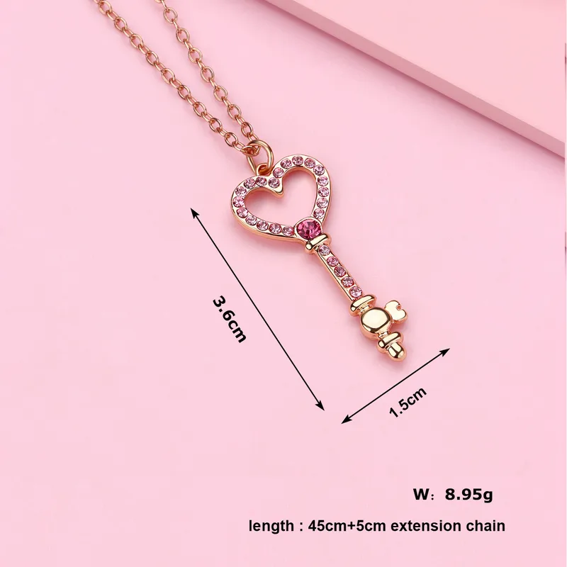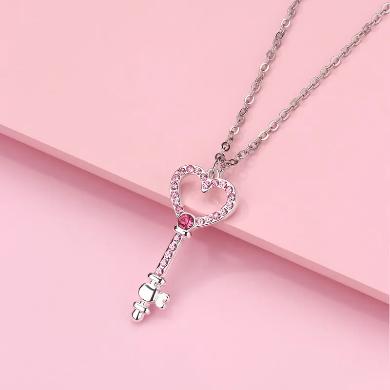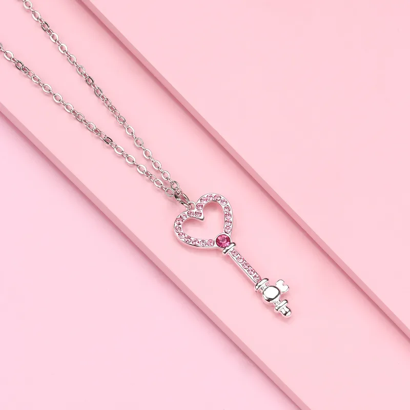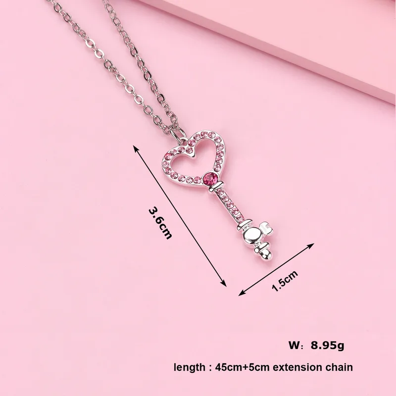 Cute Romantic Sweet Heart Shape Key Rhinestones Alloy Iron Copper Cable Chain Pendant Necklaces