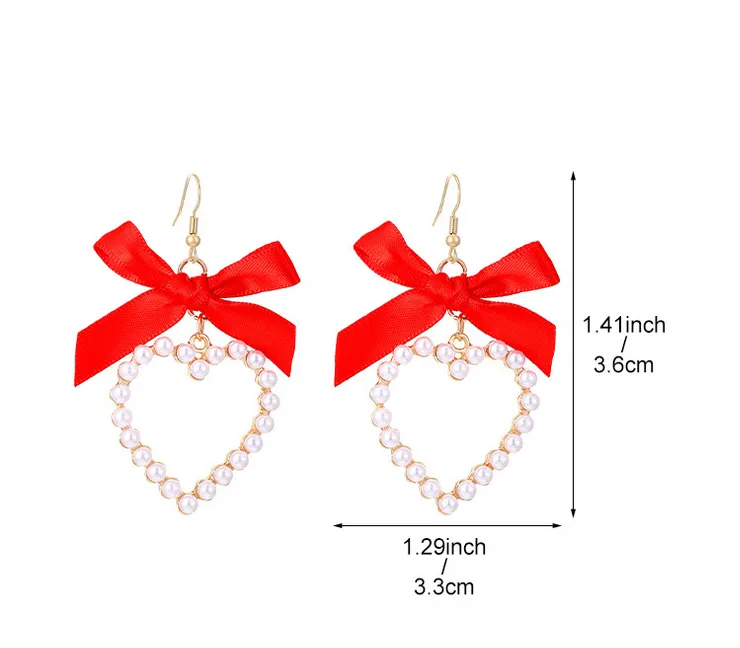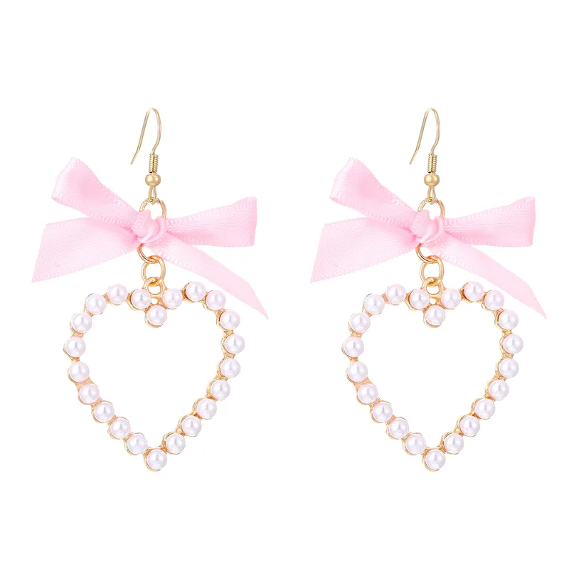 These elegant earrings feature heart-shaped drops and a charming bow design. Designed for the sophisticated lady, these earrings add a touch of romance to any outfit. Crafted with precision and care, these earrings are a symbol of timeless elegance. Perfect for both formal occasions and everyday wear, these earrings are a must-have for any jewelry collection.