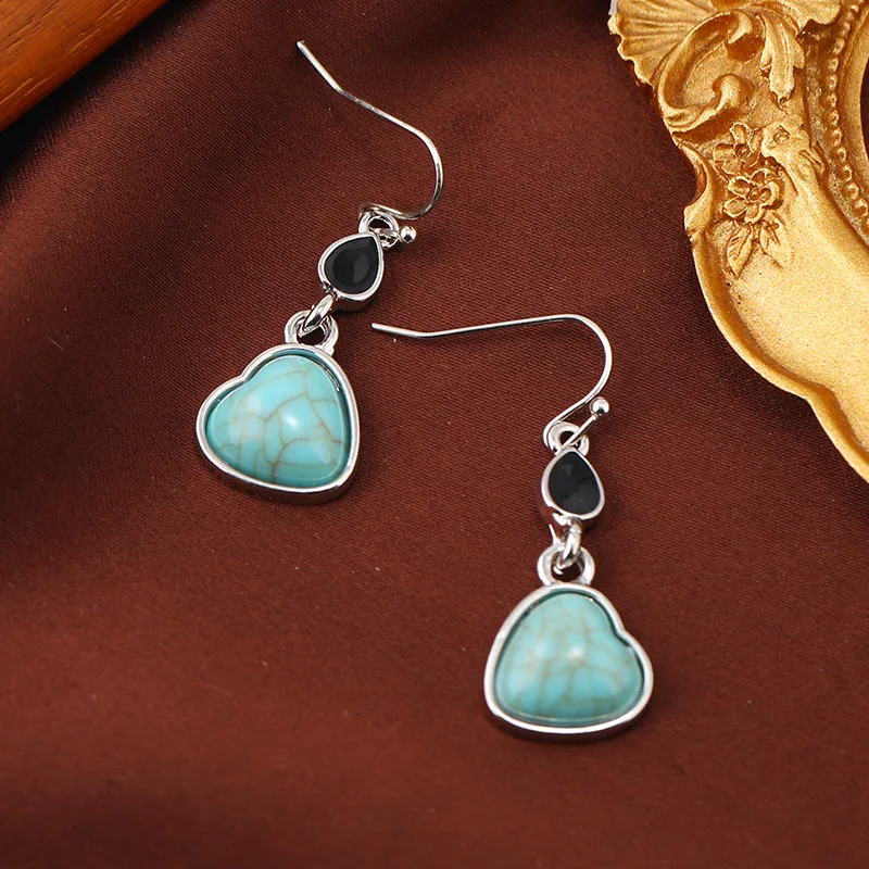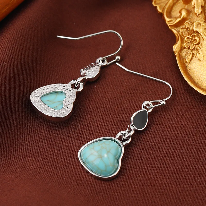 Ethnic Style Bohemian Water Droplets Heart Shape Inlay Zinc Alloy Turquoise Drop Earrings