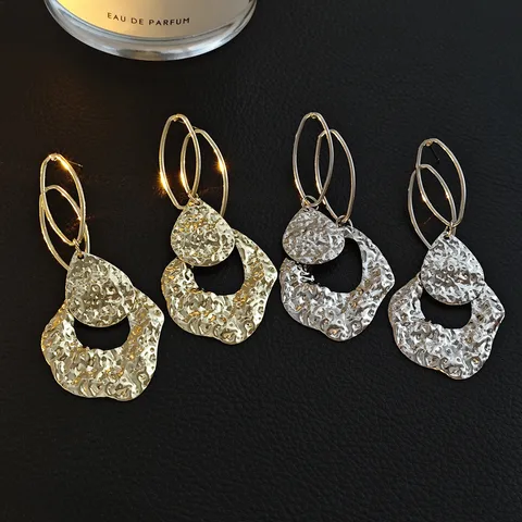 Exaggerated Punk Geometric Pleated Iron Drop Earrings
