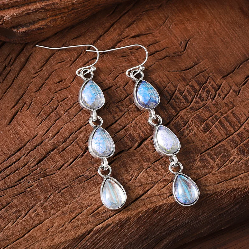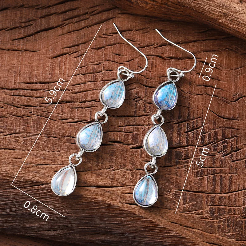 Retro Water Droplets Alloy Ornamental Stone Drop Earrings