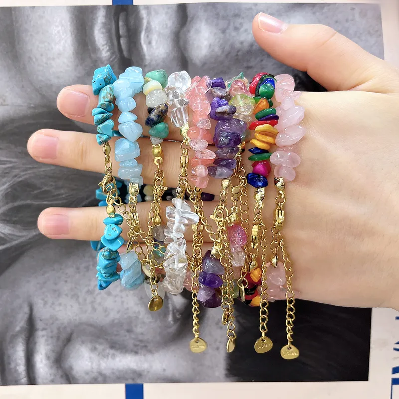 Vacation Irregular Geometric 304 Stainless Steel Stone Gravel Beaded Chain Beaded Bracelets